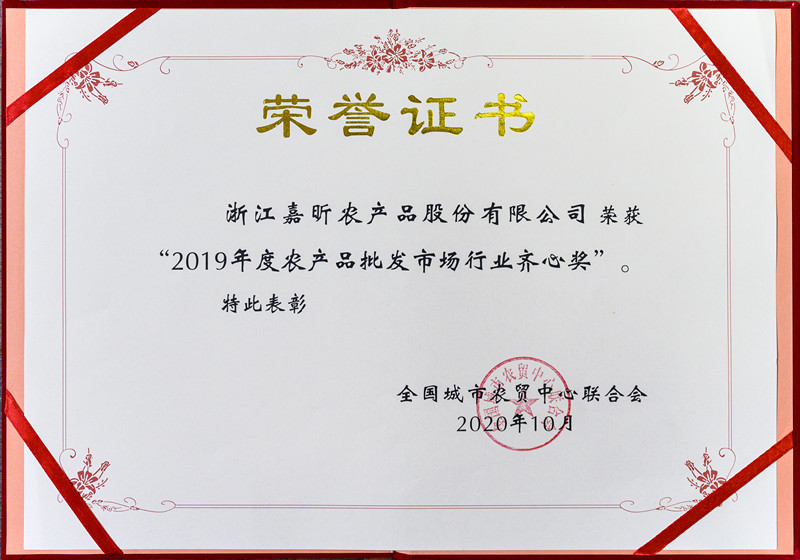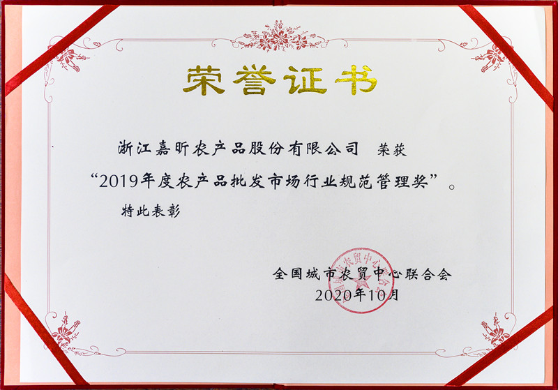 浙江嘉昕農產品股份有限公司(其前身為嘉興市蔬菜食品有限公司),是國家級服務業(yè)標準化試點(商貿流通專項)第一批典型經驗案例推廣企業(yè)并成功通過項目驗收,是全國商業(yè)質量品牌示范單位、全國誠信興商雙優(yōu)示范單位、企業(yè)信用等級AAA級企業(yè),是省農產品流通龍頭企業(yè)、省骨干農業(yè)龍頭企業(yè)、省重點流通企業(yè),省先進基層黨組織企業(yè)、省專業(yè)市場黨建示范點企業(yè)、省防控新冠疫情市場保供貢獻突出企業(yè)、省商貿流通標準化良好行為示范企業(yè),市先進黨組織企業(yè)、市抗擊新冠肺炎疫情先進集體企業(yè)、市十佳農業(yè)龍頭企業(yè)、市服務業(yè)領軍型企業(yè)、市先進集體、市文明單位、市和諧勞動關系先進企業(yè),區(qū)高質量發(fā)展十強服務業(yè)企業(yè)、區(qū)十強納稅服務業(yè)企業(yè),是市政府“菜籃子”工程主要實施單位之一。