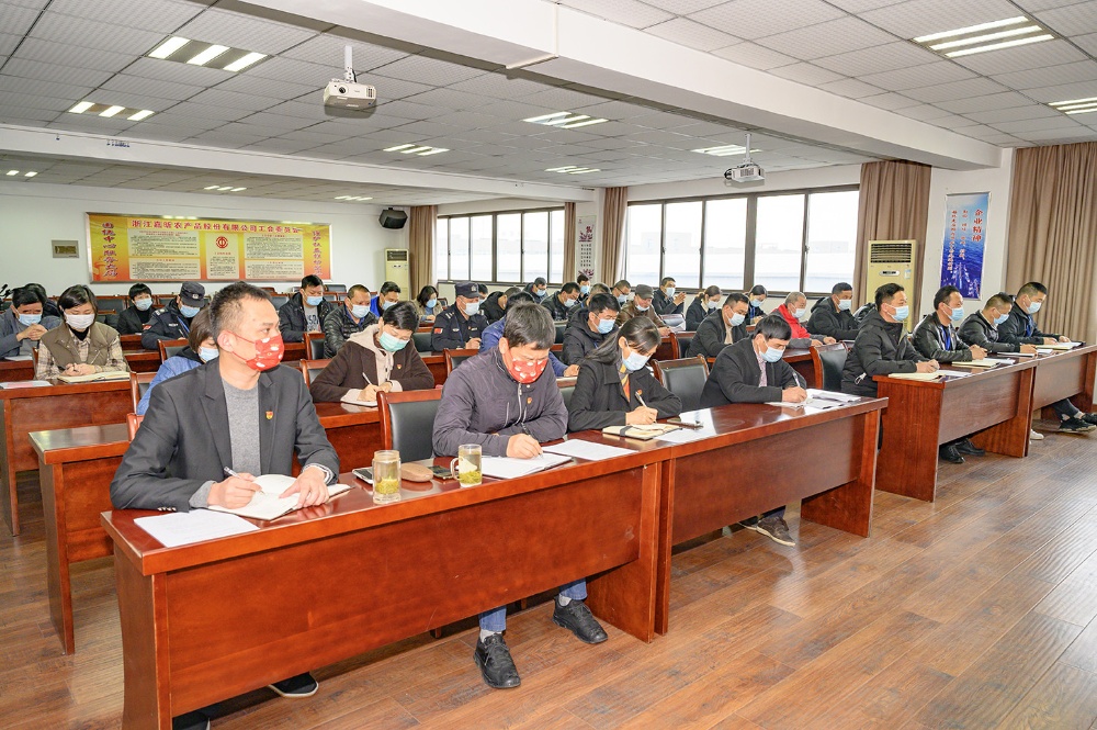 在大會主席臺就座的企業(yè)領導有:公司黨總支書記、總經(jīng)理、董事屠春甫,公司董事、董秘夏培鈞,公司董事、副總經(jīng)理胡喚,公司董事、黨總支副書記、工會主席吳文夫,公司副總經(jīng)理、財務負責人蔣周良,公司副總經(jīng)理、市場總經(jīng)理王國祥。 大會由副總蔣周良主持,先后進行了兩大項議程。公司行政班子、職能科室成員、市場領導班子、市場班組長以上及特邀代表等共47人出席大會。會議嚴格落實疫情防控相關要求。