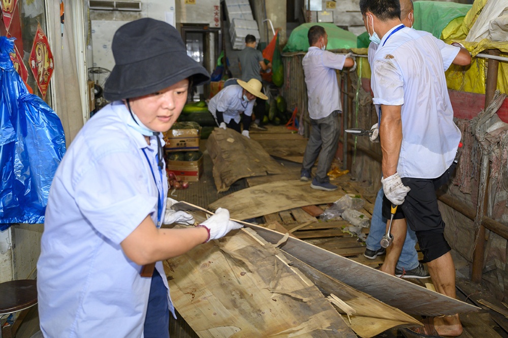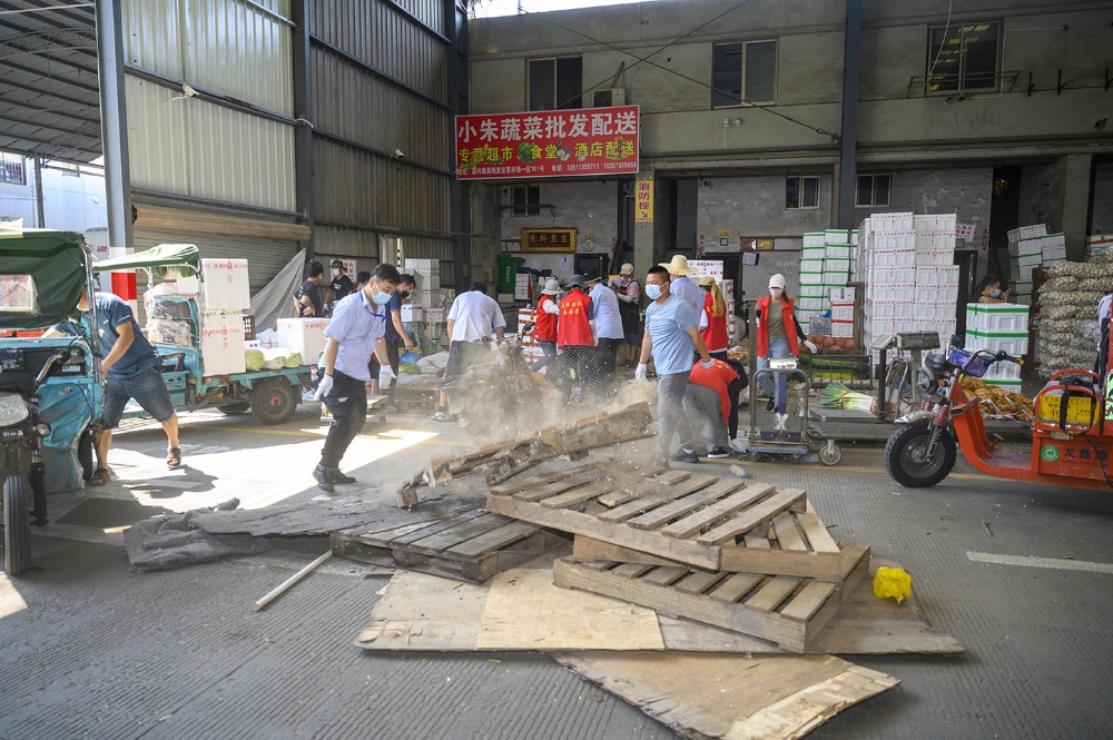 難點重點先再作整治:28日下午2時至18時,黨員青年突擊隊員和員工們用4個小時開展“清積物、整貨場”大行動,將市場1-4區(qū)所有攤位內(nèi)部衛(wèi)生難點問題作了一次徹底大清理、對貨物墊倉板底下的垃圾雜物作徹底清倉、全部木制墊倉板作清除,為后續(xù)將進行的攤位墻面刷涂和整體更新墊倉板作好準備。市場遷入現(xiàn)址已近十八年有余,時間長致房屋設(shè)施相對陳舊,通過本次創(chuàng)建迎檢對現(xiàn)場環(huán)境面貌加以改善,進一步構(gòu)建市場良好秩序。