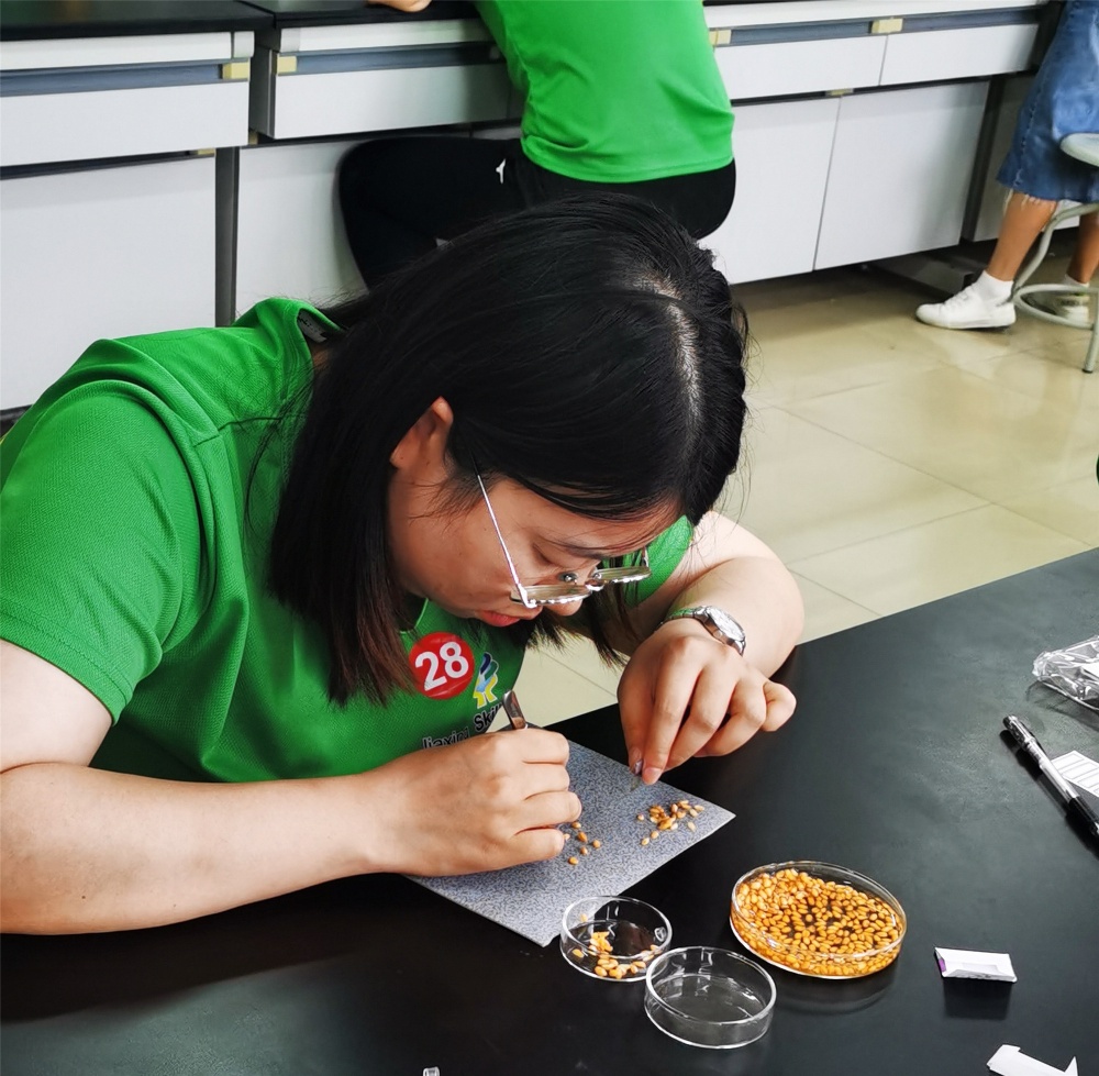 9月18日早上9:00時(shí),競(jìng)賽拉開(kāi)帷幕,上午進(jìn)行理論考試,下午進(jìn)行實(shí)操考試。小麥種子凈度分析、千粒重、生活力測(cè)定……,比賽項(xiàng)目難度大,時(shí)間緊張。但是通過(guò)半個(gè)月來(lái)的刻苦學(xué)習(xí),原本陌生的知識(shí),此時(shí)在大家面前操作起來(lái)得心應(yīng)手。