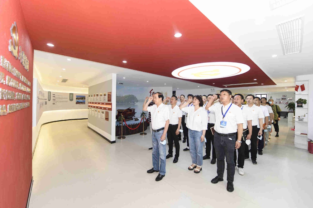全體黨員參觀新建成的黨群中心,由中心管理員姚穎一邊作立體式講解一邊帶領(lǐng)大家參觀。隨后,全體黨員在黨課教室集中收看學(xué)習(xí)黨史國史教育影片《國家檔案》,集體重溫入黨宣誓儀式。