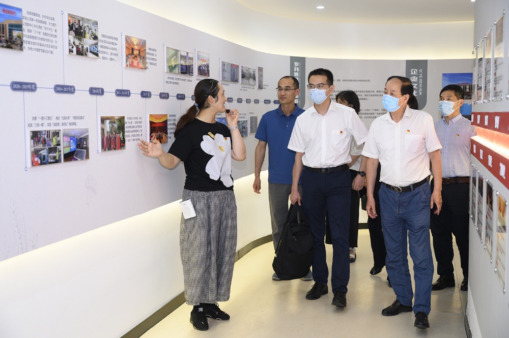 指導(dǎo)檢查組領(lǐng)導(dǎo)一行參觀公司新建成的黨群服務(wù)中心、食品安全檢驗(yàn)檢測(cè)中心,不時(shí)駐足并詢問公司黨建歷史和企業(yè)發(fā)展歷程等。