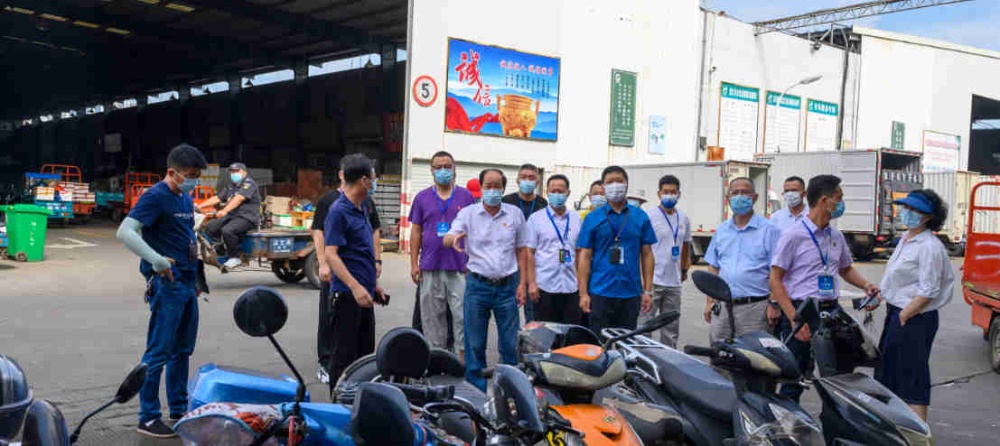 圖為:公司黨總支書記、總經(jīng)理屠春甫,帶領(lǐng)班子檢查市場(chǎng)防暑降溫情況。