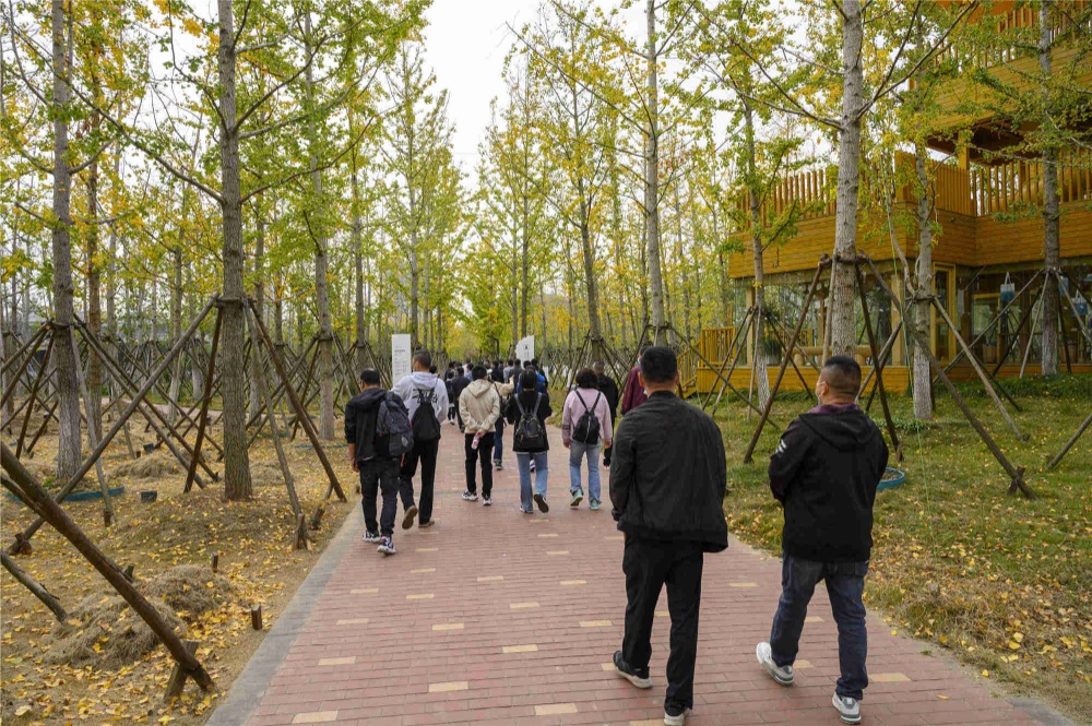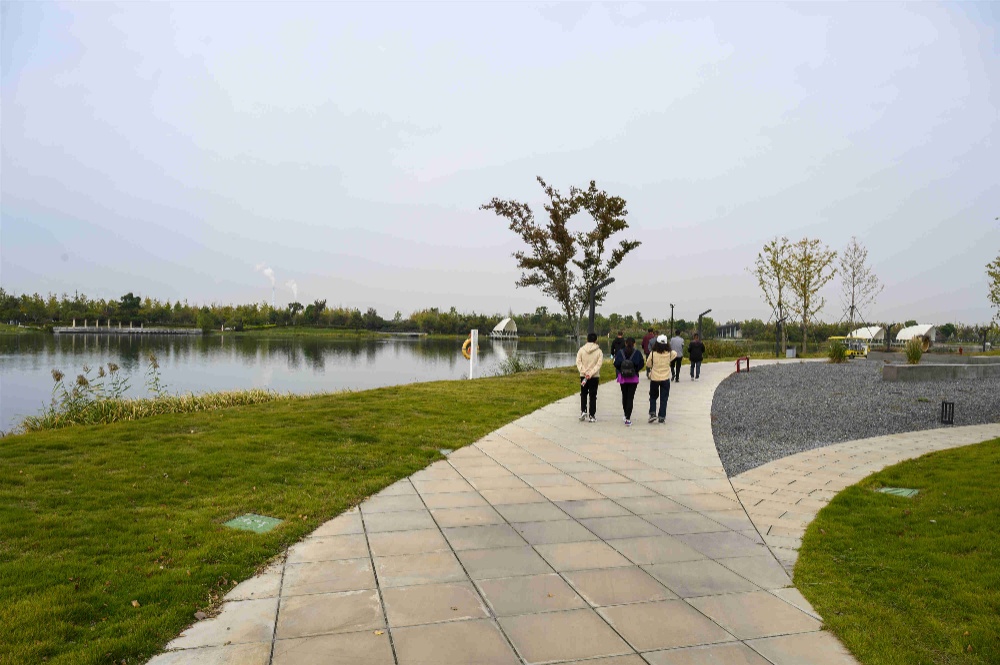 整個(gè)公園以自然生態(tài)景觀為依托,植入3萬(wàn)余棵銀杏樹(shù)組成的銀杏林是它的最大特色,園內(nèi)利用豐富的水資源,融合濃郁的當(dāng)代文化,配套打造了美術(shù)館、水鄉(xiāng)民宿等特色項(xiàng)目,融自然復(fù)育、藝術(shù)展覽、文化拾遺、樂(lè)知體驗(yàn)等于一體。園內(nèi)飼養(yǎng)的羊駝、梅花鹿、黑天鵝等珍稀動(dòng)物與人們親密互動(dòng),成群的野鴨和水鳥(niǎo)在湖面上歡快地嬉戲著,這是它們最愛(ài)的家園。